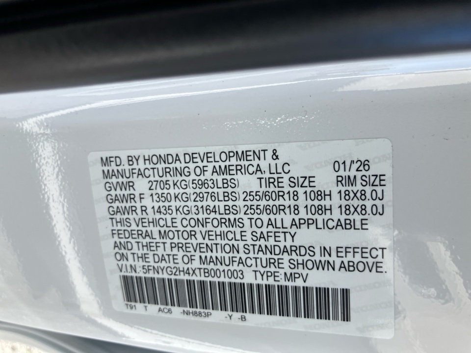 VIN 5FNYG2H4XTB001003