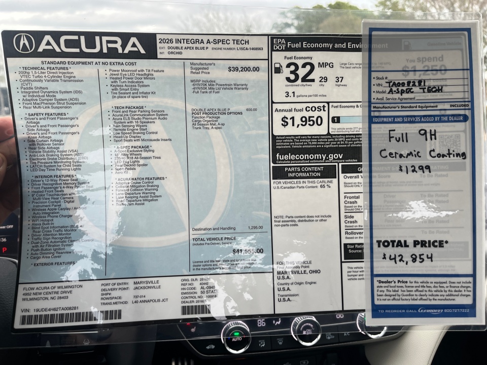 19UDE4H62TA008281 2026 Acura Integra FWD A-Spec with Technology