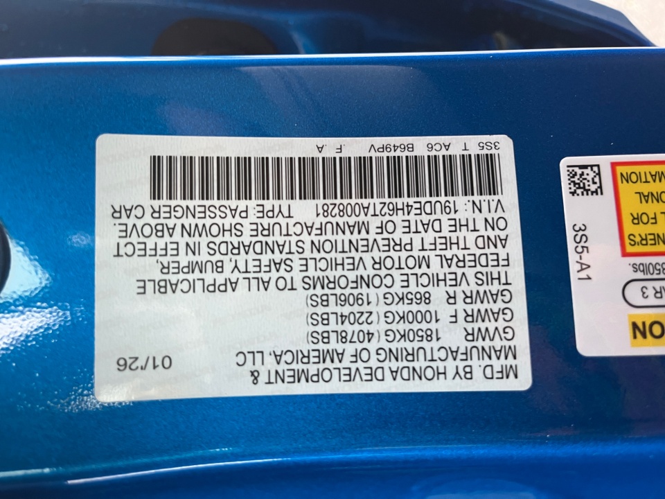 VIN 19UDE4H62TA008281