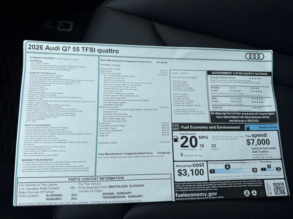2026 Audi Q7 | Premium Plus 55 quattro | 5 miles