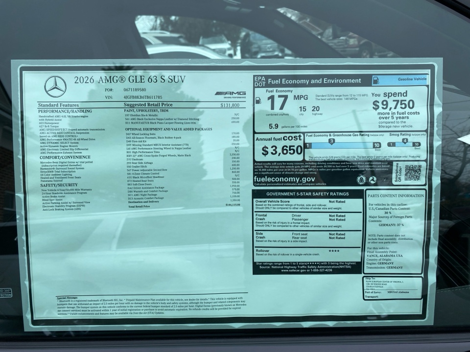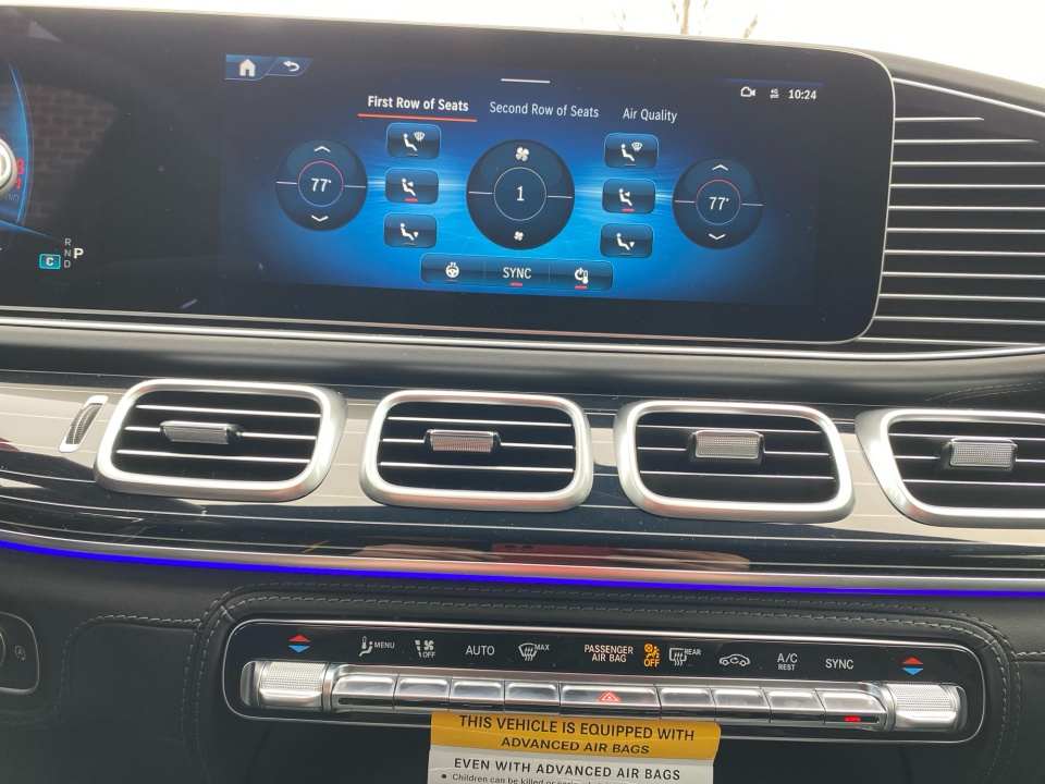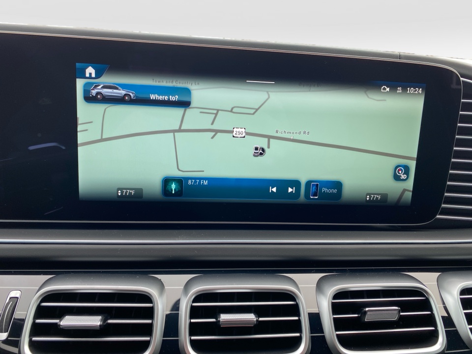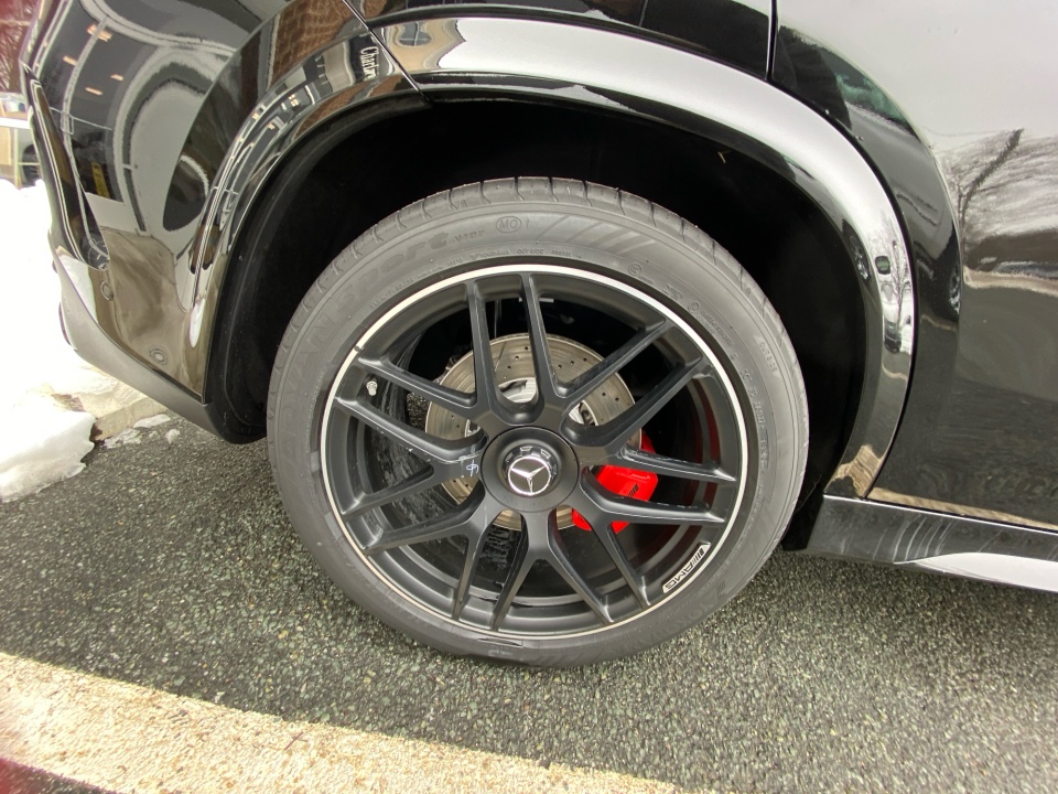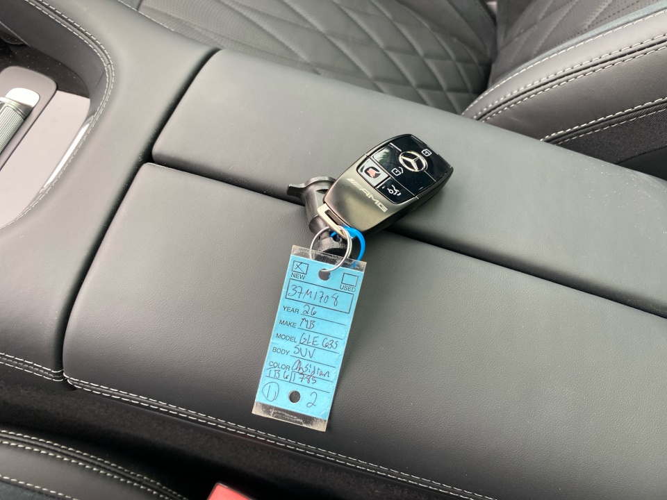 Finished in Obsidian Black Metallic with AMG Black Exclusive Nappa leather and diamond stitching, this GLE 63S makes a bold, purposeful statement. The AMG Night Package, AMG exterior styling, and 22-inch AMG cross-spoke forged wheels in matte black give it an aggressive stance, while red brake calipers and quad exhaust outlets hint at the performance beneath. Subtle touches like illuminated door sills and privacy glass complete the look.