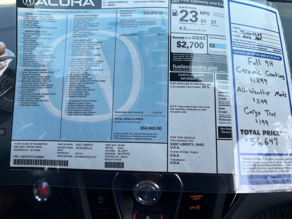 Accessories Include:$199 Folding Rear Cargo Tray$249 All Weather Mats$1,299 First Place Finish 9H Ceramic Coating