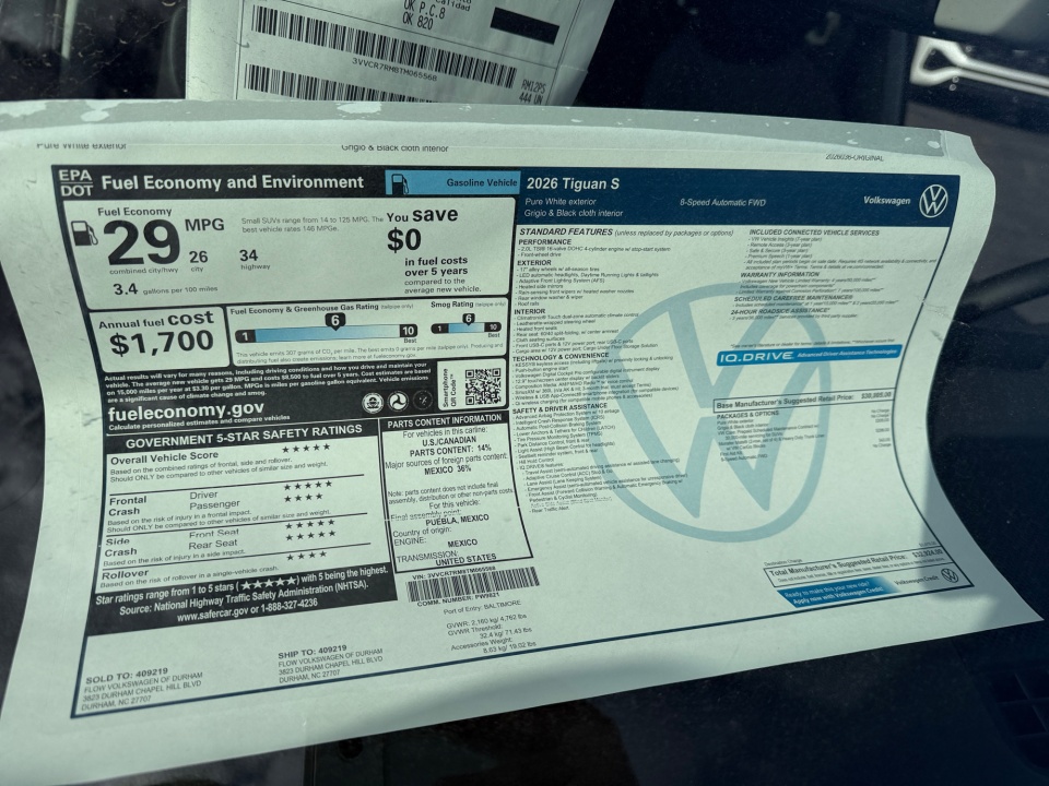 2026 Tiguan Volkswagen | 2.0T S FWD | 10 miles