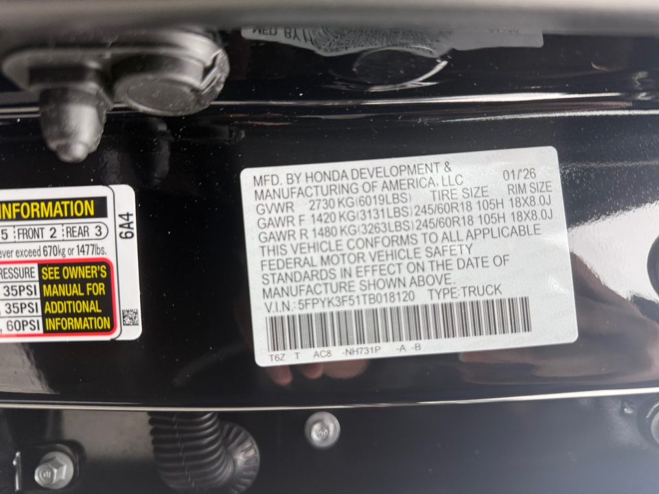 5FPYK3F51TB018120 2026 Honda Ridgeline RTL