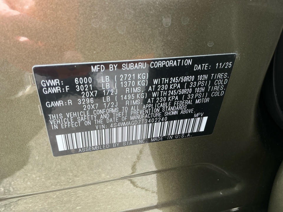 4S4WMAGD7T3402240 2026 Subaru Ascent Limited 7-Passenger