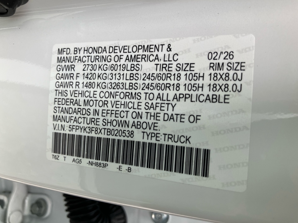 5FPYK3F8XTB020538 2026 Honda Ridgeline Black Edition