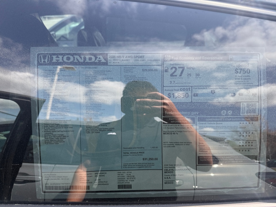 2026 Honda HR-V | Sport AWD CVT | 6 miles