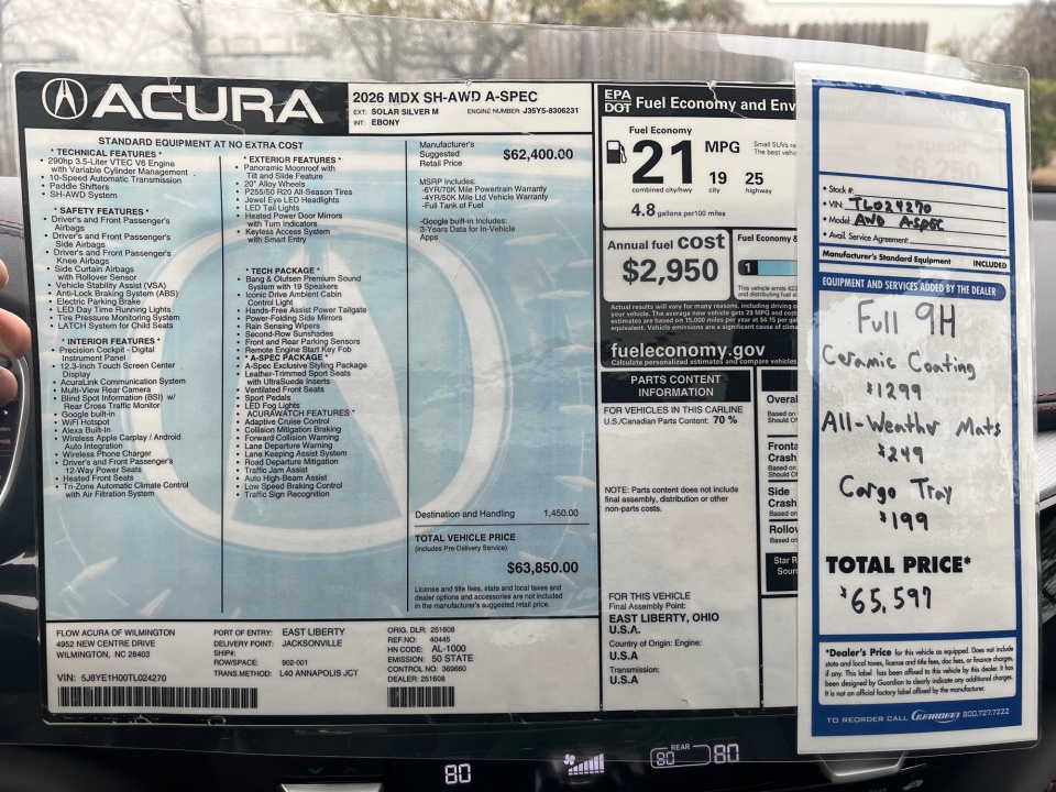 2026 MDX Acura | SH-AWD w/A-Spec Package | 6 miles