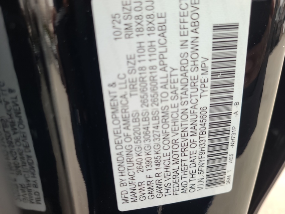 VIN 5FNYF9H33TB045606