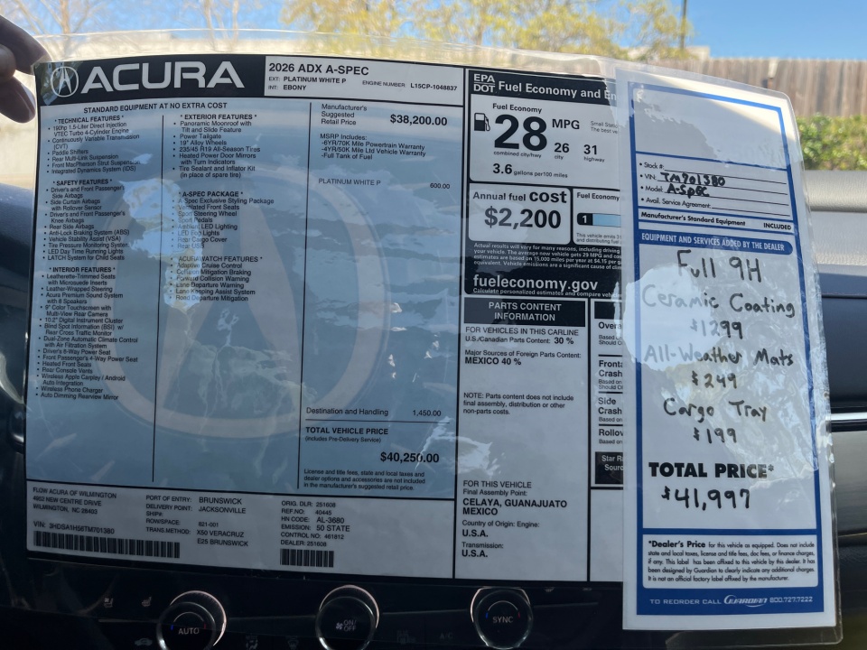 2026 ADX Acura | FWD w/A-Spec Package | 9 miles