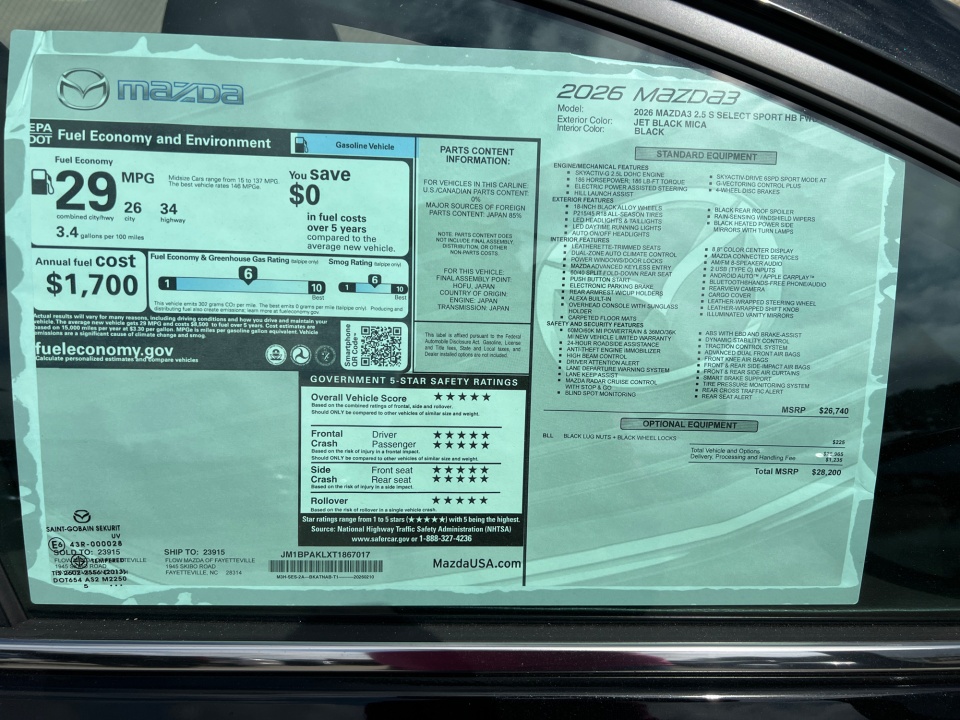JM1BPAKLXT1867017 2026 Mazda Mazda3 Hatchback 2.5 S Select Sport