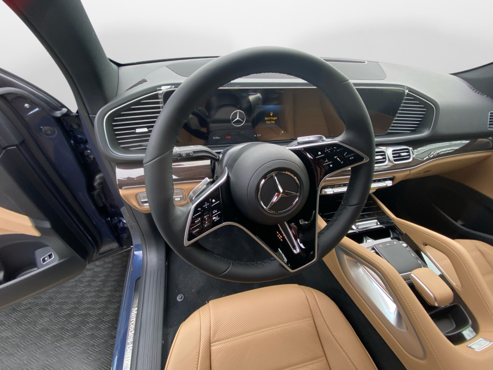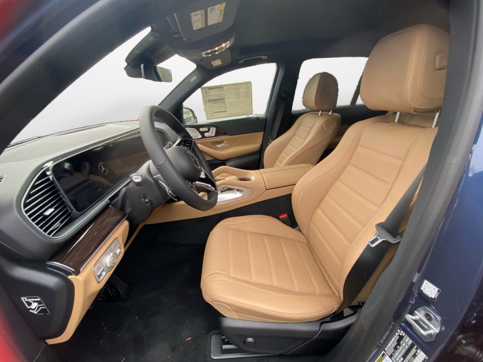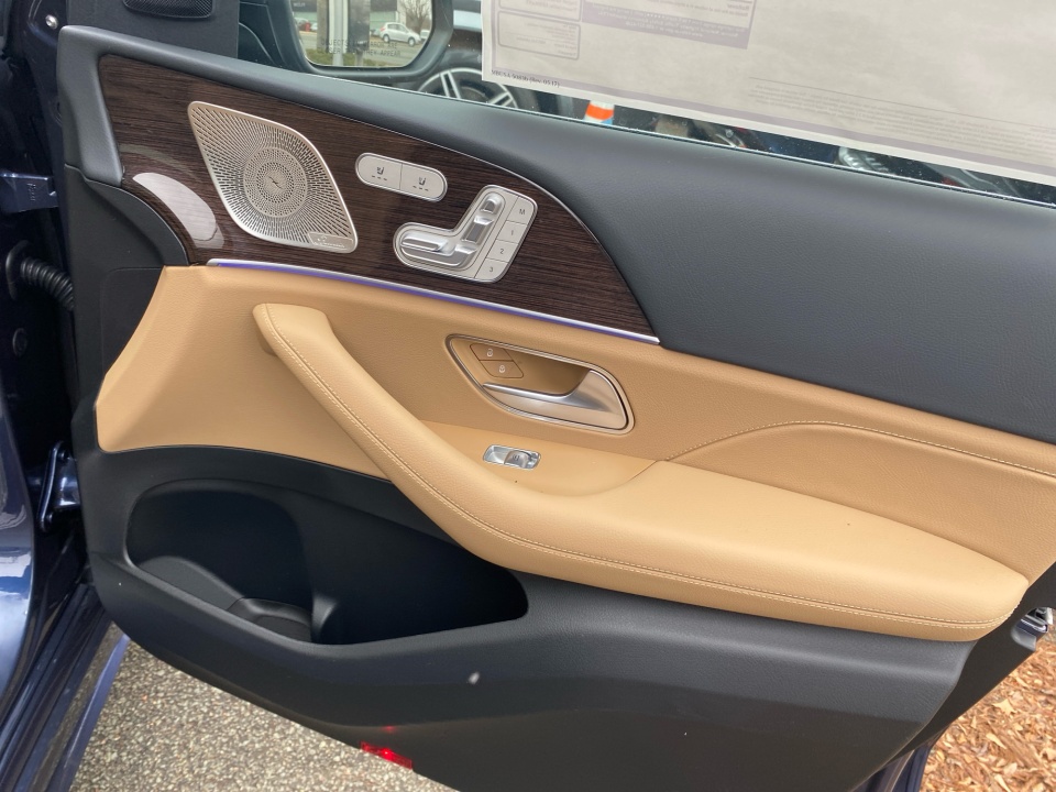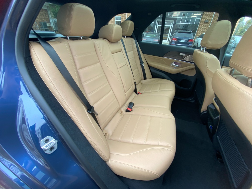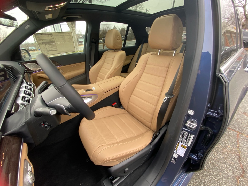 Finished in Twilight Blue Metallic with a Catalana Beige and Black leather interior, this GLE 450 pairs rich color with confident AMG Line styling. 21-inch AMG multispoke wheels, a body color roof spoiler, privacy glass, and LED headlamps give it a strong presence, while the panoramic sunroof adds light and openness. Illuminated details and clean lines complete the look.