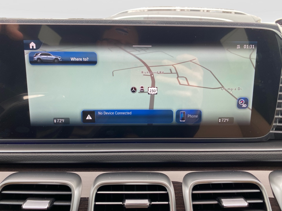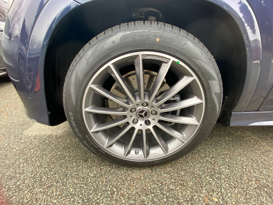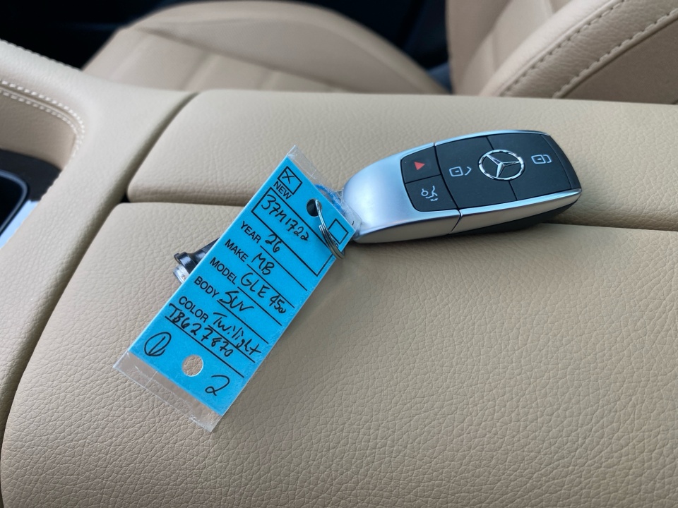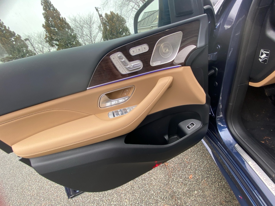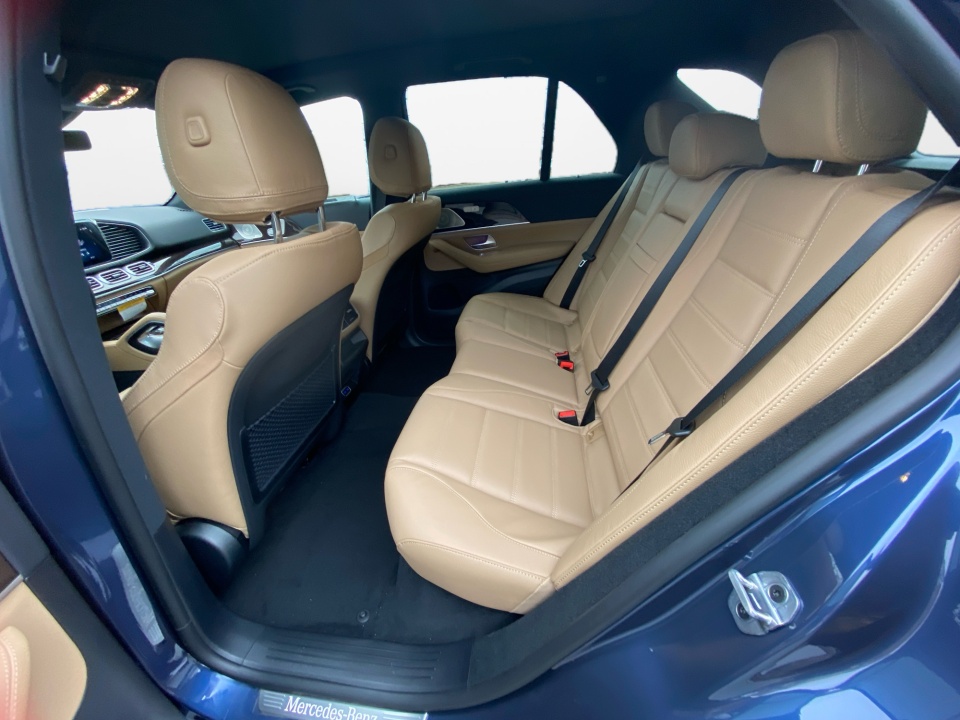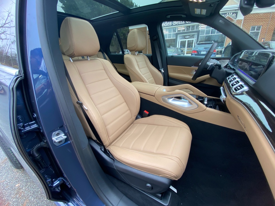 Finished in Twilight Blue Metallic with a Catalana Beige and Black leather interior, this GLE 450 pairs rich color with confident AMG Line styling. 21-inch AMG multispoke wheels, a body color roof spoiler, privacy glass, and LED headlamps give it a strong presence, while the panoramic sunroof adds light and openness. Illuminated details and clean lines complete the look.