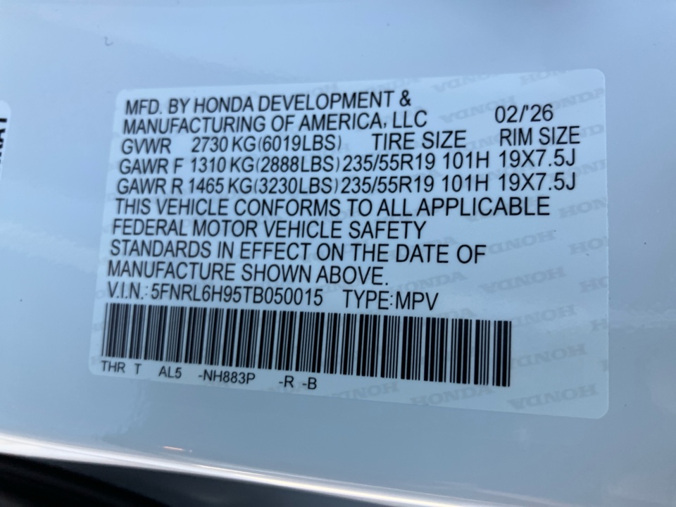 VIN 5FNRL6H95TB050015