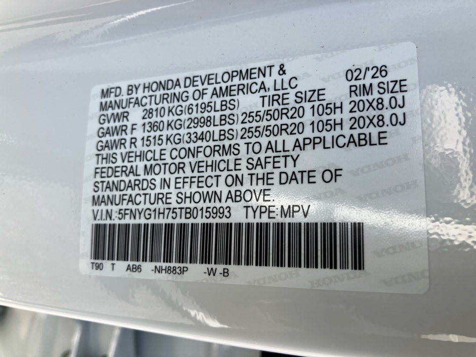 5FNYG1H75TB015993 2026 Honda Pilot Touring