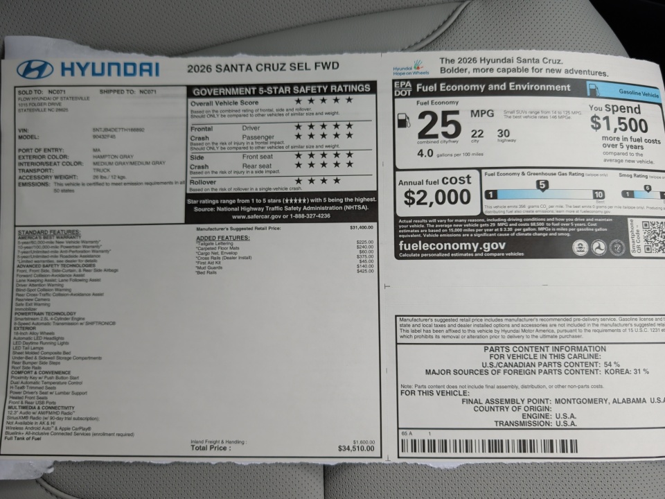 2026 Santa Cruz Hyundai | SEL FWD | 13 miles