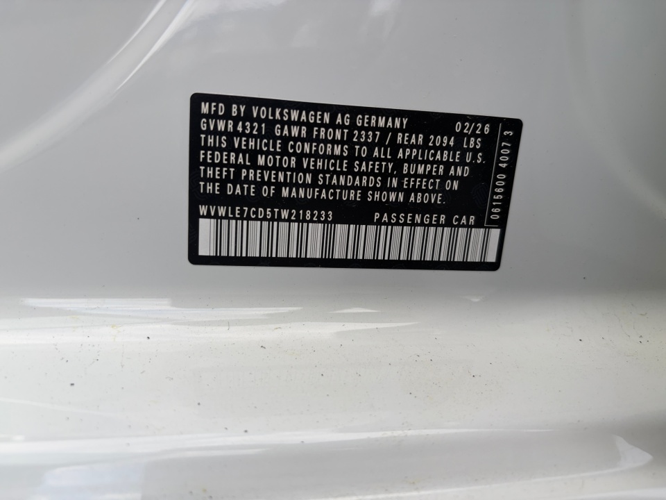 VIN WVWLE7CD5TW218233