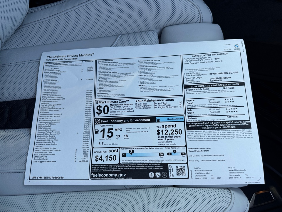 5YM13ET02T9390580 2026 BMW X5 M Competition
