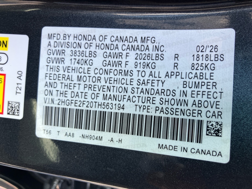 VIN 2HGFE2F20TH563194