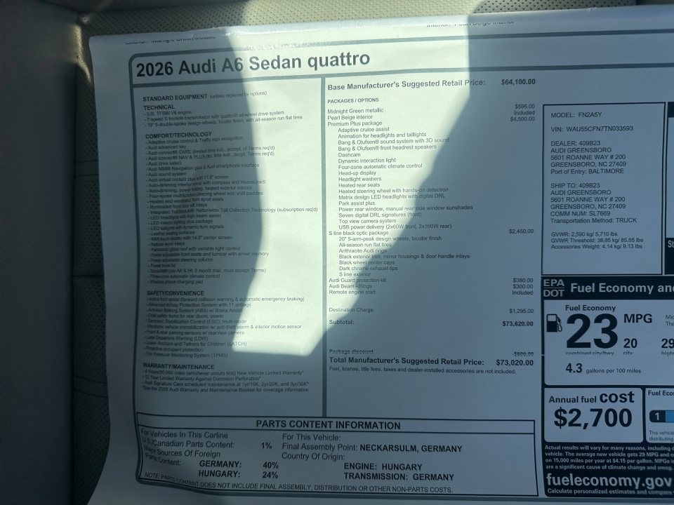 2026 A6 Audi | Premium Plus quattro | 12 miles