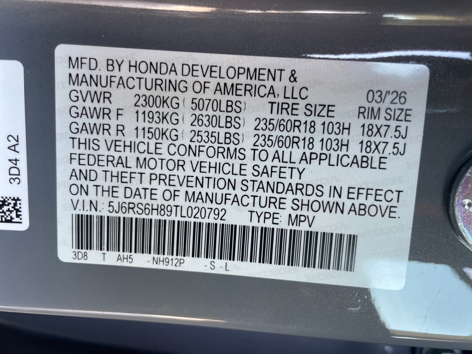 VIN 5J6RS6H89TL020792