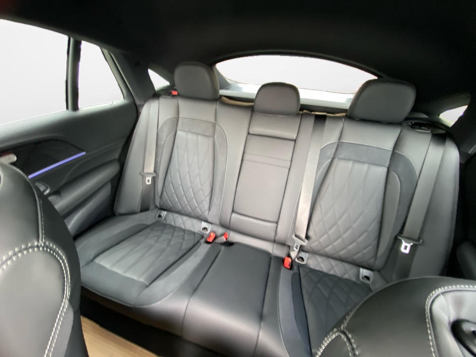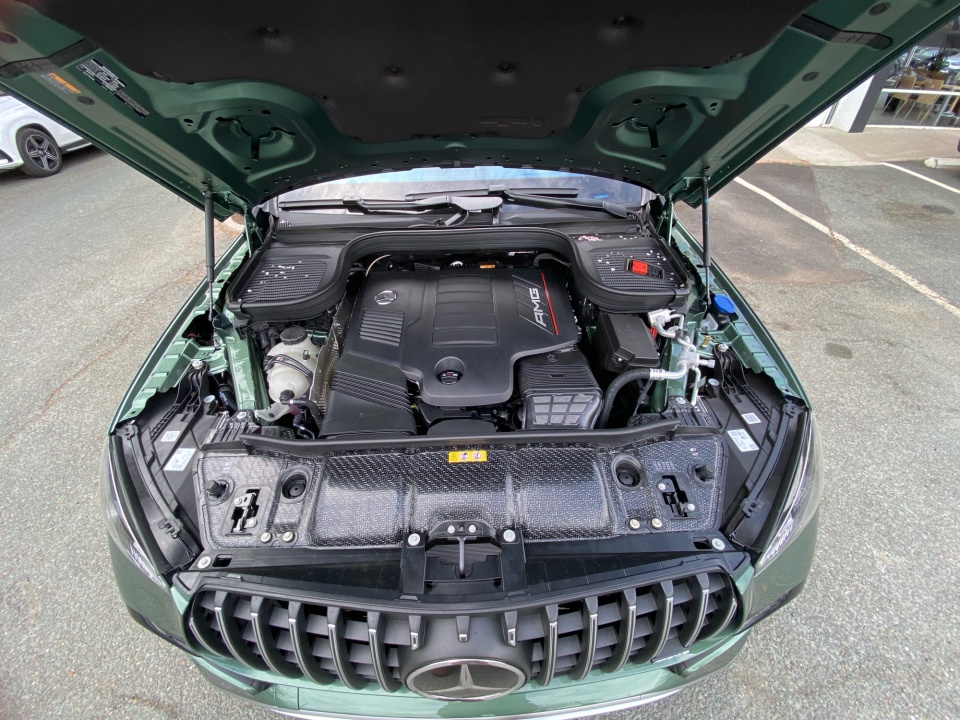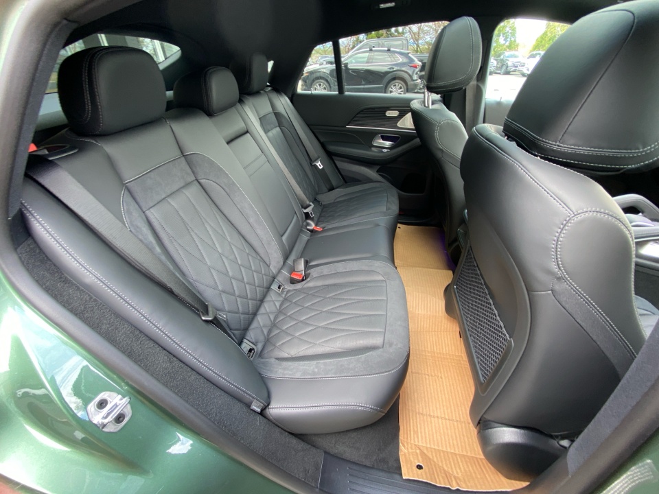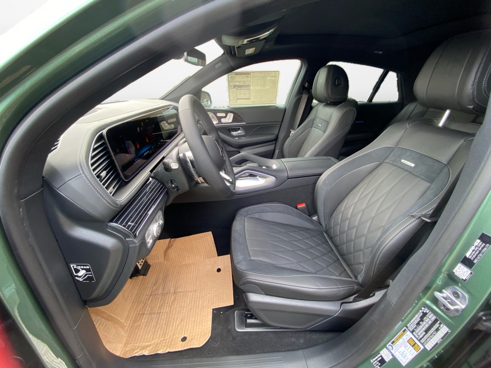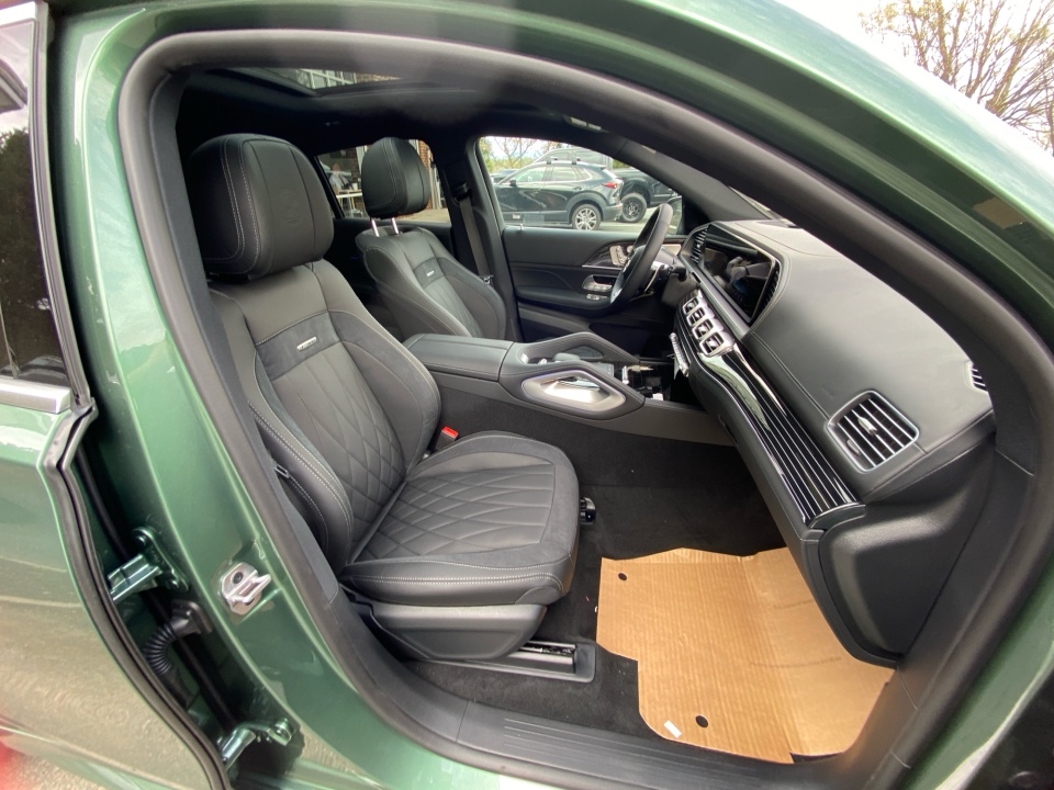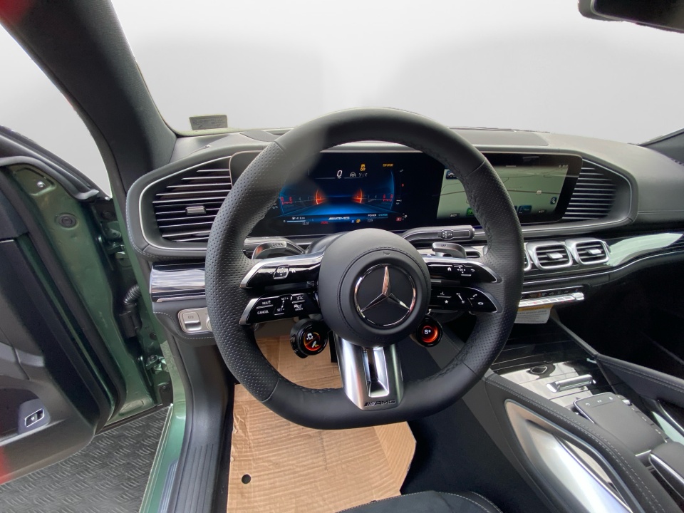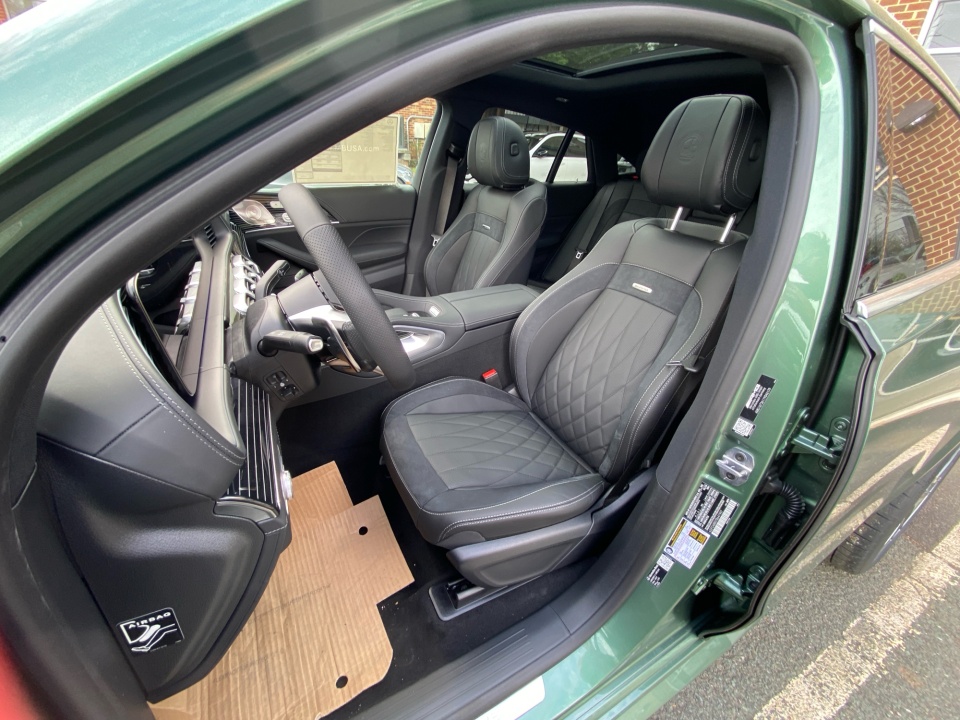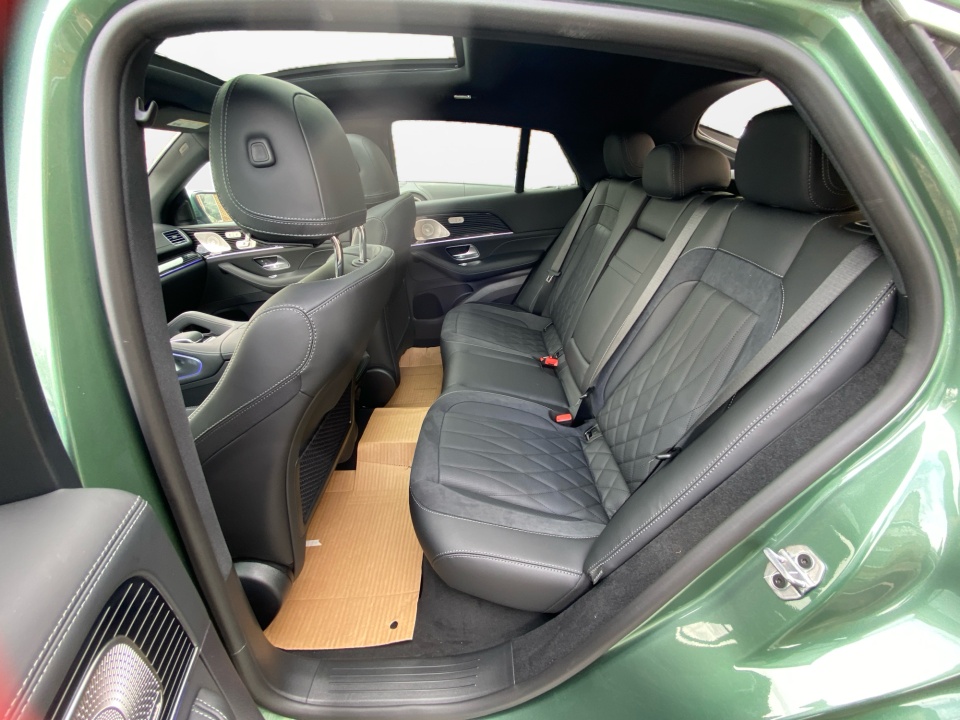 Finished in MANUFAKTUR Ireland Mid Green Metallic, this GLE 53 Coupe makes a statement before it even moves. AMG body styling, a rear spoiler, and 22-inch AMG cross spoke forged wheels give it an aggressive stance, while subtle details like the side-mirror logo projectors and soft-close doors add a refined edge.