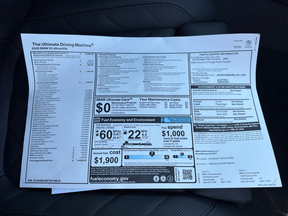 2026 BMW X5 PHEV | xDrive50e Plug-In Hybrid | 10 miles