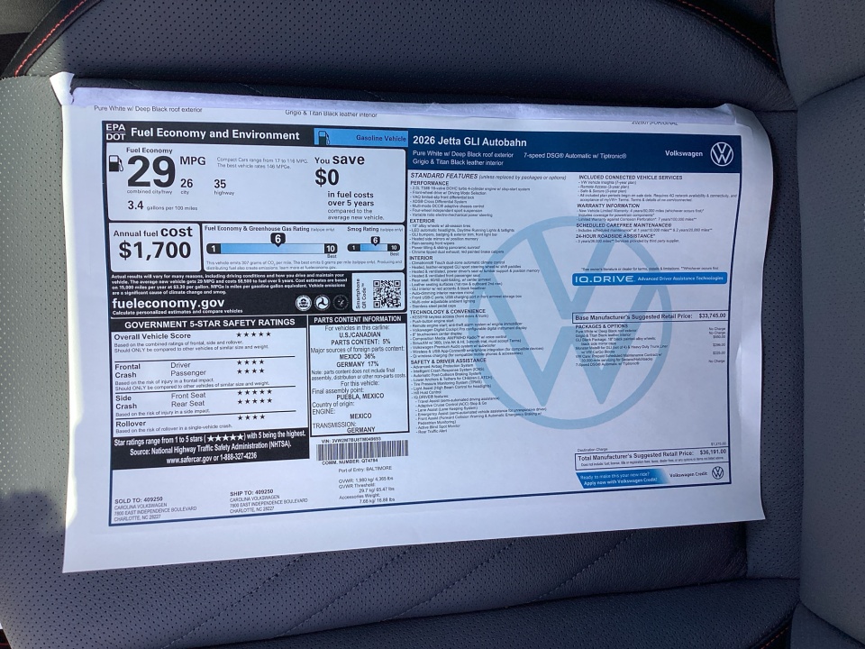 2026 Volkswagen Jetta GLI | Autobahn DSG | 136 miles