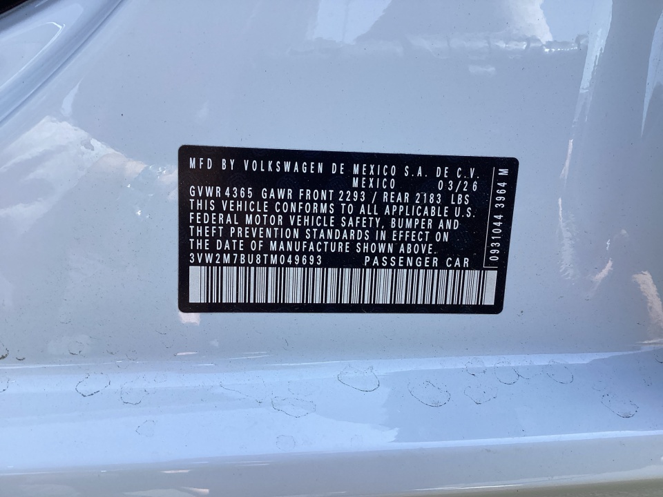 VIN 3VW2M7BU8TM049693