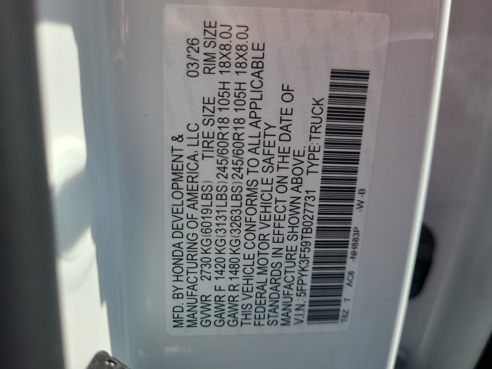 5FPYK3F59TB027731 2026 Honda Ridgeline RTL