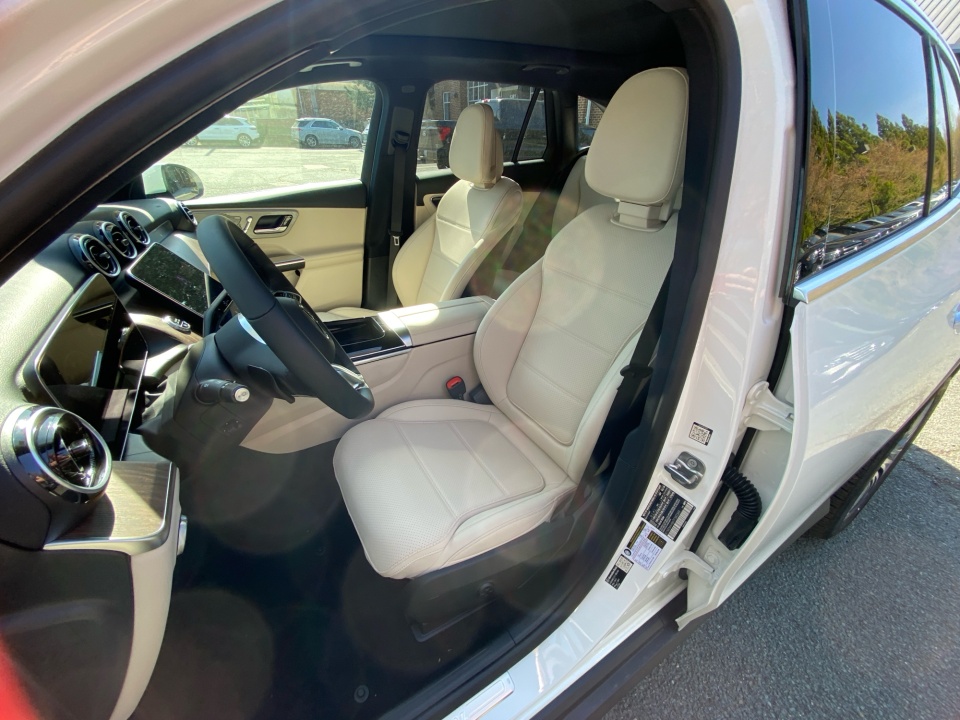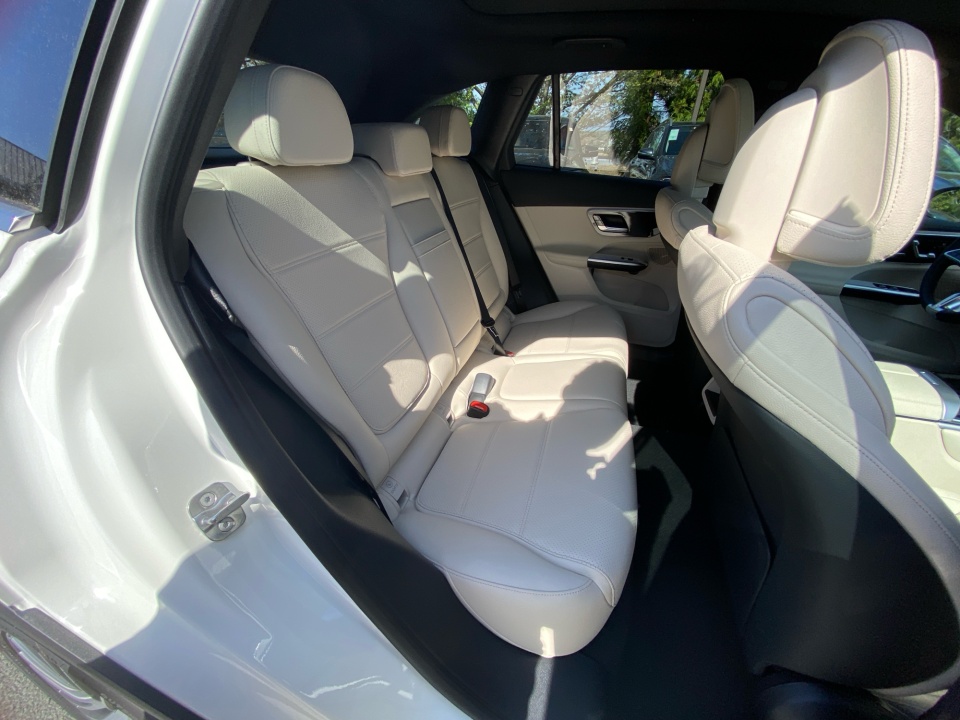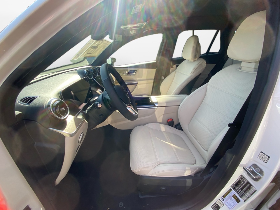 Finished in Polar White and set on 19" Multispoke wheels, the GLC presents a clean and confident look with flowing lines and balanced proportions. LED headlamps, aluminum roof rails, and subtle chrome accents enhance its upscale appearance, while the compact yet athletic stance makes it equally at home in the city or on the highway.