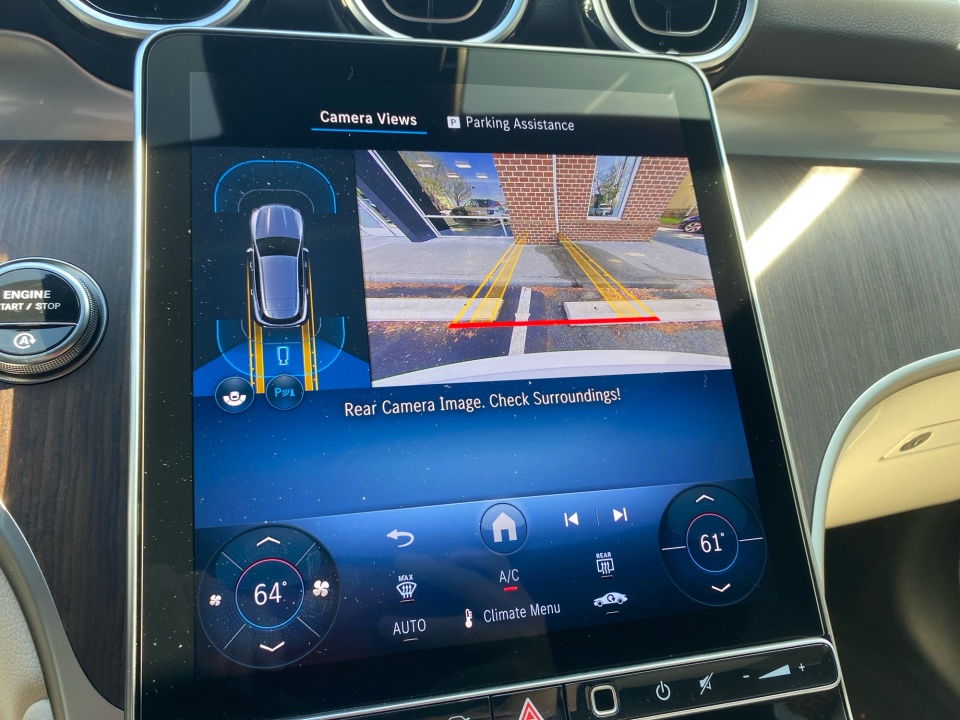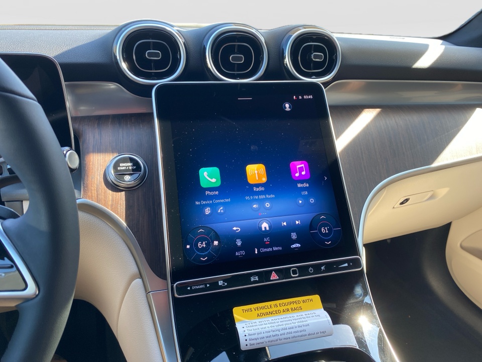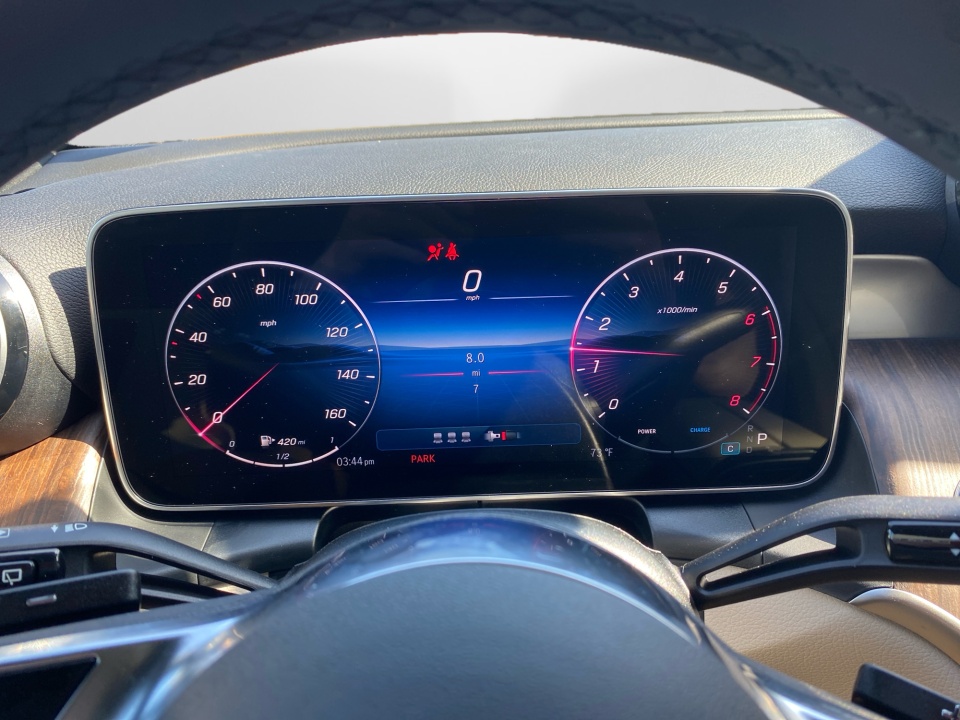Technology is centered around the MBUX system with dual 12.3" displays, navigation with live traffic, and seamless Apple CarPlay and Android Auto integration. PARKTRONIC with Active Parking Assist and a rearview camera simplify tight spaces, while KEYLESS-GO, wireless charging, and HANDS FREE ACCESS add everyday convenience.