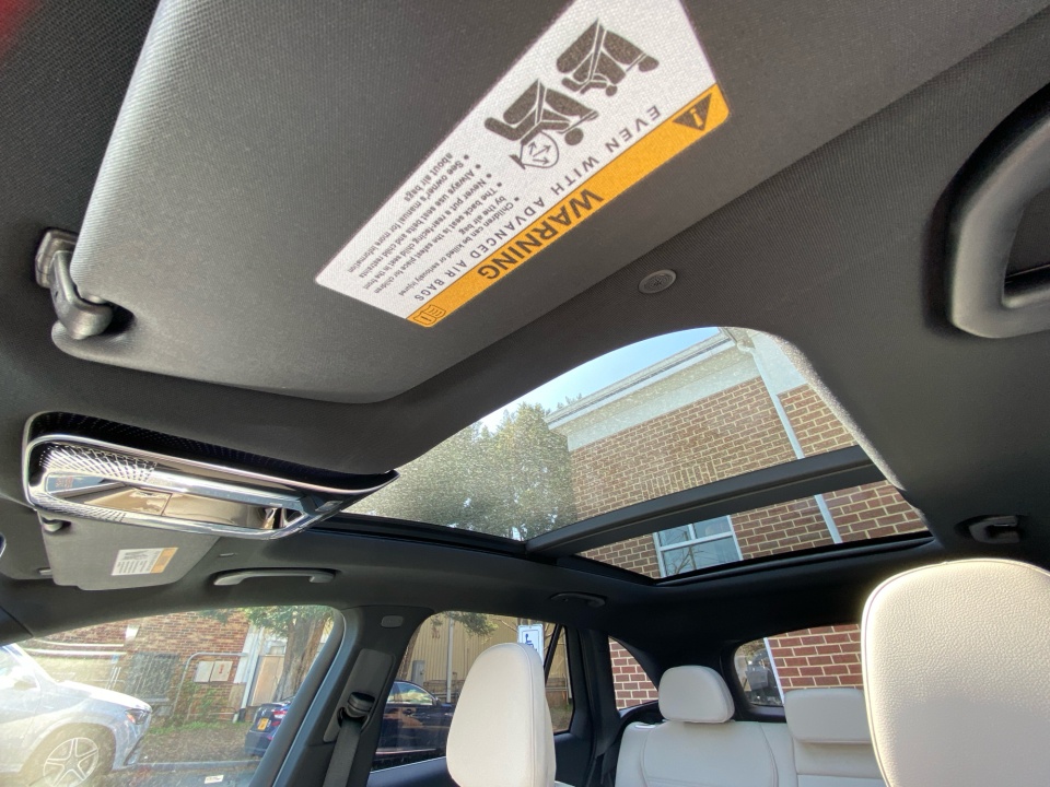 Inside, the Macchiato Beige interior is paired with Natural Grain Walnut wood trim and a piano black lacquer center console for a warm, contemporary feel. Heated front seats, a heated steering wheel, and the Winter Package bring comfort in colder months, while the panoramic sunroof fills the cabin with natural light. Power seating with memory, ambient lighting, and flexible cargo space create a cabin designed for both comfort and function.