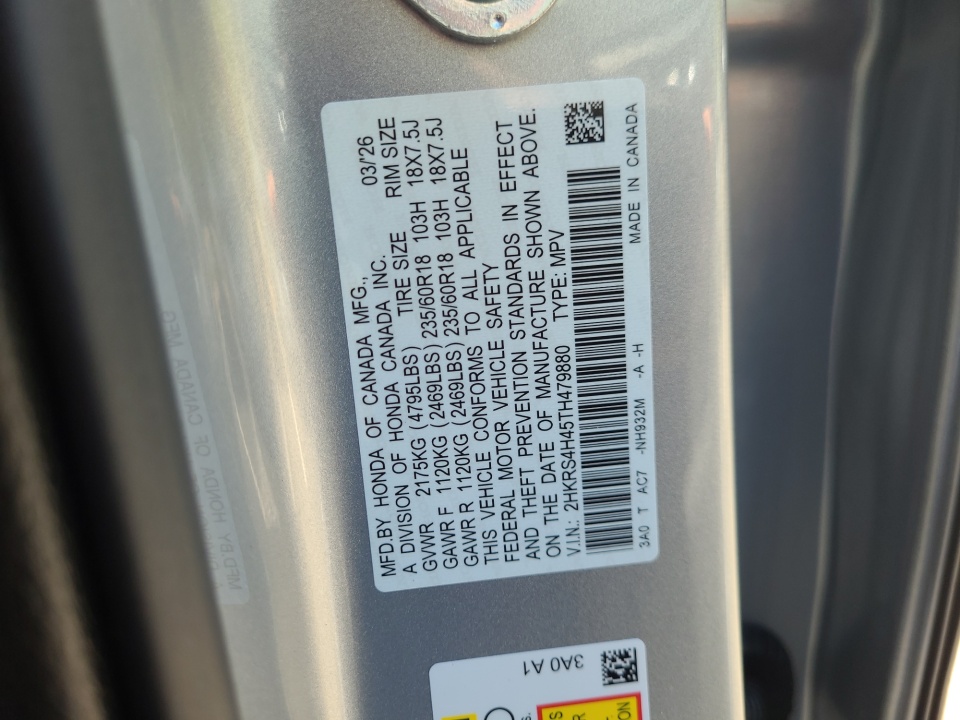 VIN 2HKRS4H45TH479880