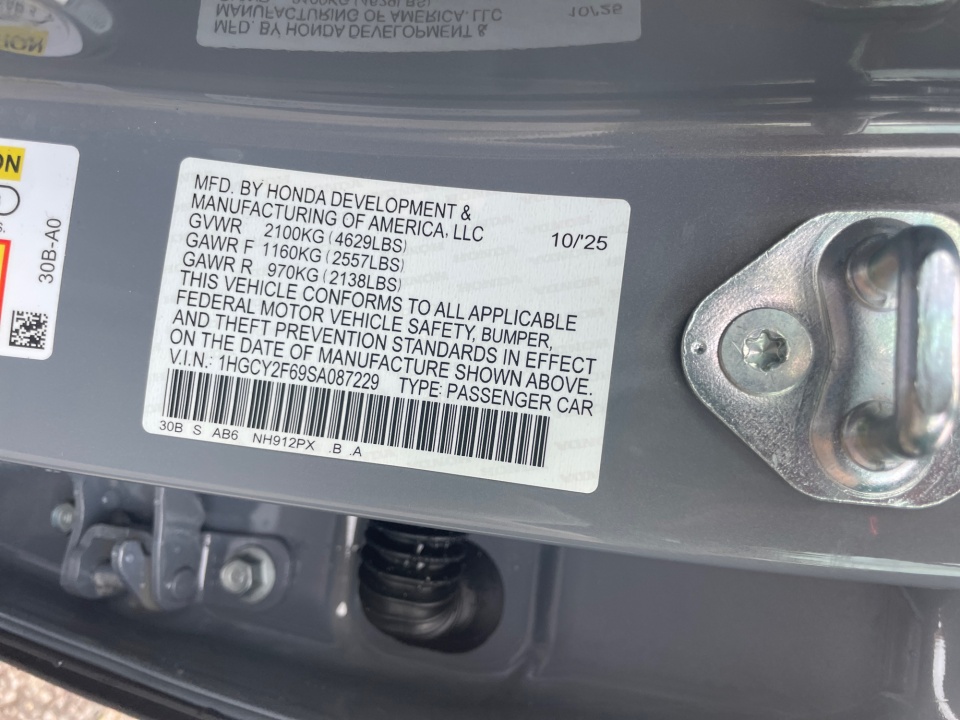 VIN 1HGCY2F69SA087229