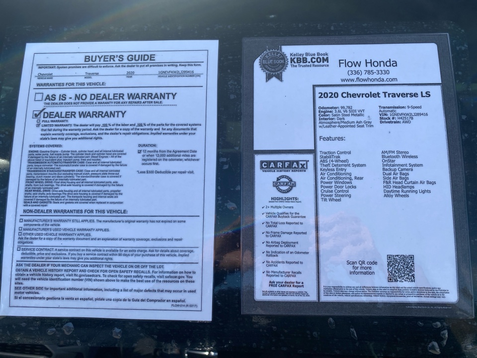 2020 Traverse Chevrolet | AWD 4dr LS w/1LS | 99,884 miles