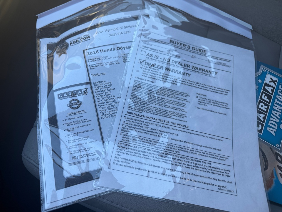 FLOW CERTIFIED! 12 MONTHS/12000 MILE WARRANTY, 3 day money back guarantee, and a free maintenance package on this 2016 Honda Odyssey Modern Steel Metallic EX-L! **