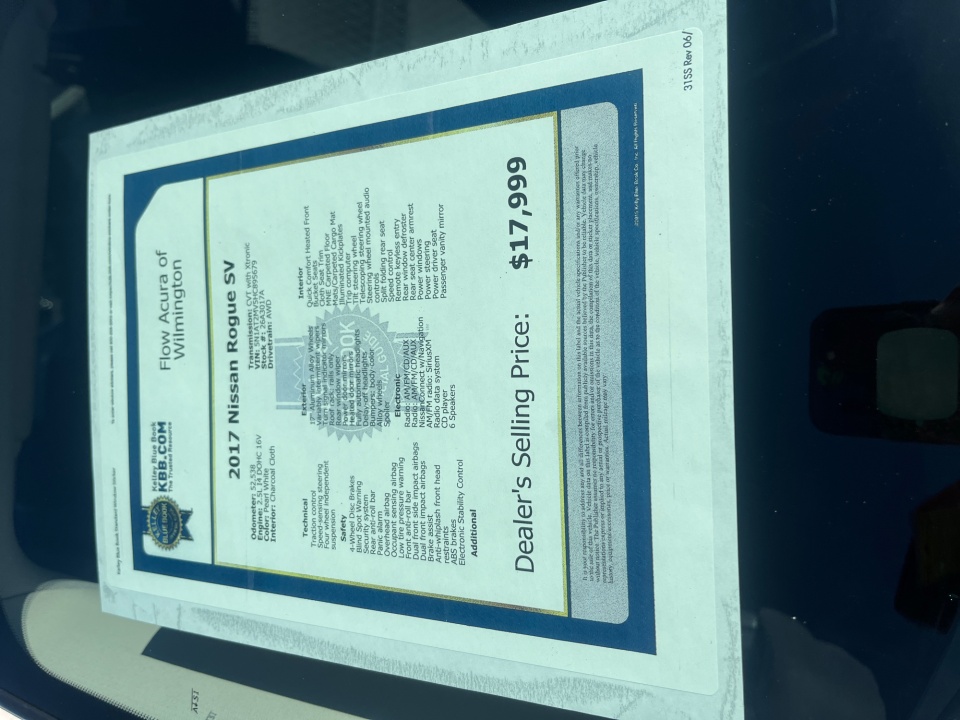 Flow Acura of Wilmington is pleased to offer this great 2017 Nissan Rogue Pearl White SV with the following features: