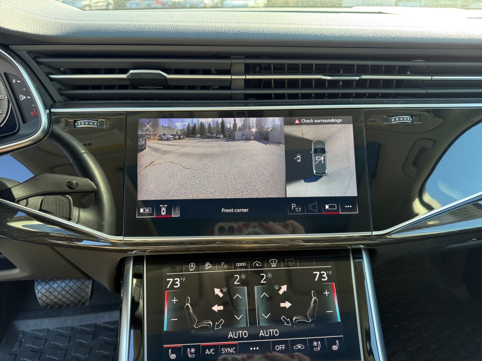 Audi Certified pre-owned Certified, 10 Speakers, 3rd row seats: bench, 4-Wheel Disc Brakes, ABS brakes, Air Conditioning, Alloy wheels, AM/FM radio: SiriusXM w/ 360L, Auto High-beam Headlights, Auto-dimming door mirrors, Auto-dimming Rear-View mirror, Automatic temperature control, Brake assist, Bumpers: body-color, Compass, Delay-off headlights, Driver door bin, Driver vanity mirror, Dual front impact airbags, Dual front side impact airbags, Electronic Stability Control, Emergency communication system: Audi connect CARE, Exterior Parking Camera Rear, Four wheel independent suspension, Front anti-roll bar, Front Bucket Seats, Front Center Armrest, Front dual zone A/C, Front fog lights, Front reading lights, Fully automatic headlights, Garage door transmitter: HomeLink, Genuine wood door panel insert, Heated door mirrors, Heated Front Bucket Seats, Heated front seats, Illuminated entry, Leather Seating Surfaces, Leather Shift Knob, Leather steering wheel, Low tire pressure warning, Memory seat, Navigation system: Audi MMI Navigation plus with Touch Response, Occupant sensing airbag, Outside temperature display, Overhead airbag, Overhead console, Panic alarm, Passenger door bin, Passenger vanity mirror, Power door mirrors, Power driver seat, Power Liftgate, Power moonroof: Panoramic, Power passenger seat, Power steering, Power windows, Radio data system, Radio: Audi Sound System, Rain sensing wipers, Rear air conditioning, Rear anti-roll bar, Rear fog lights, Rear reading lights, Rear seat center armrest, Rear side impact airbag, Rear window defroster, Rear window wiper, Reclining 3rd row seat, Remote keyless entry, Security system, Speed control, Speed-sensing steering, Split folding rear seat, Spoiler, Steering wheel memory, Steering wheel mounted audio controls, Tachometer, Telescoping steering wheel, Tilt steering wheel, T