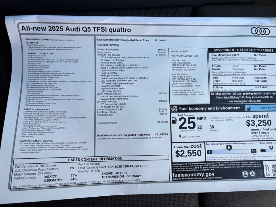 2025 Audi All-new Q5 | Premium Plus 2.0 TFSI quattro | 12 miles