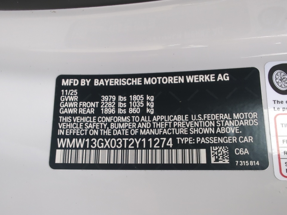 VIN WMW13GX03T2Y11274