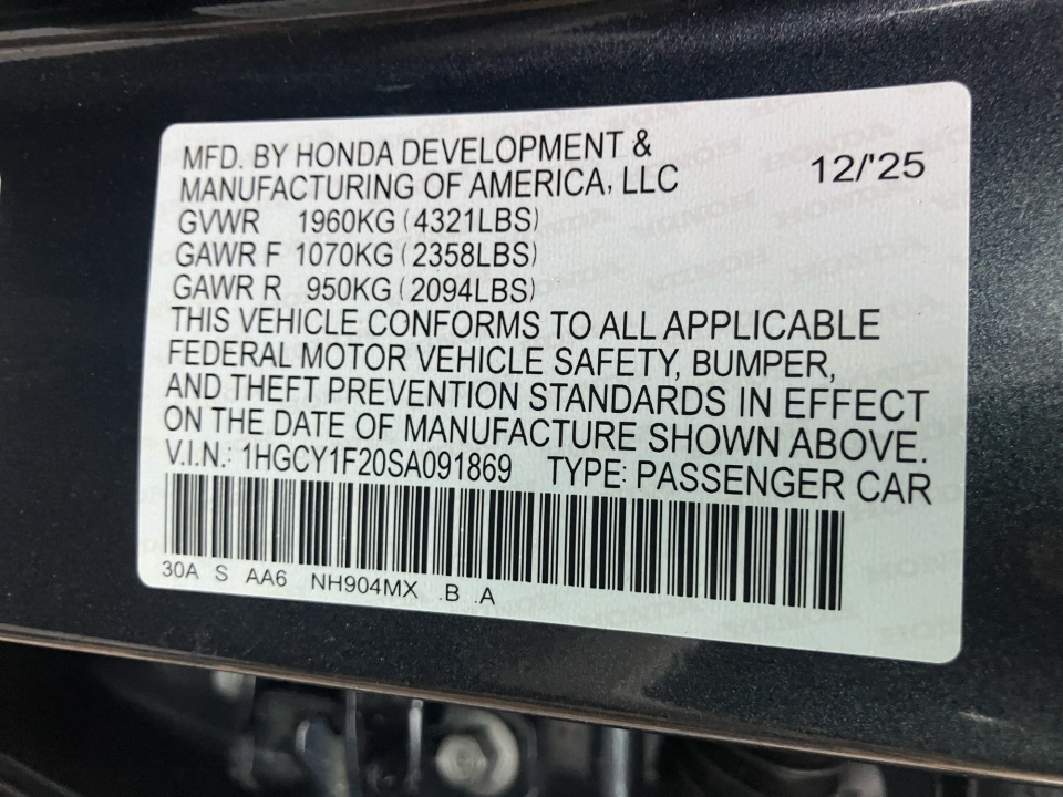 VIN 1HGCY1F20SA091869