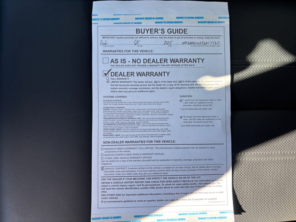FLOW CERTIFIED! 48 month/100k MILE WARRANTY, 3 day money back guarantee, and a free maintenance package on this 2025 Audi Q5 Glacier White Metallic 2.0T Premium Plus! ** CLEAN CARFAX!, Black w/Leather Seating Surfaces, 20" Wheel Package with 5-Arm Design, Adaptive Cruise Assist, Animation For Headlights and Taillights, Bang & Olufsen Sound System with 3D Sound, Black Warm Weather Package, Dynamic Interaction Light, Head-Up Display, Headlight Washers, Heated Steering Wheel with Hands-on Detection, LED Headlights Plus with Digital DRL, LED Interior Lighting Pro Package, Manual Rear Side Window Sunshades, Navigation system: Audi Navigation Plus, Panoramic Sunroof, Premium Plus, Top View Camera System, USB Power Delivery (2x60W Front and 2x100W Rear), Ventilated Front Sport Seats, Wheels: 19" 5-Double-Spoke Design, Wheels: 20" 5-Arm Design. CARFAX One-Owner. Clean CARFAX.