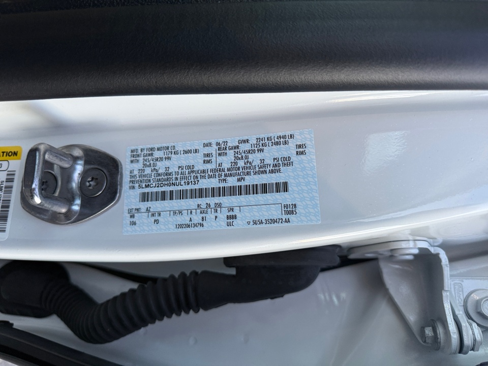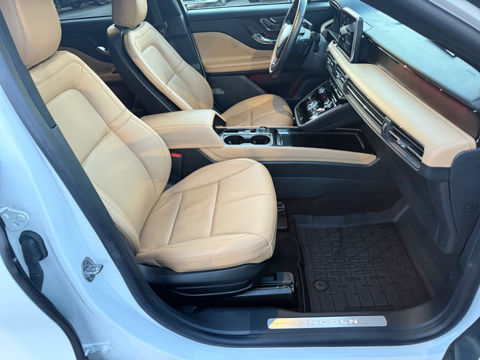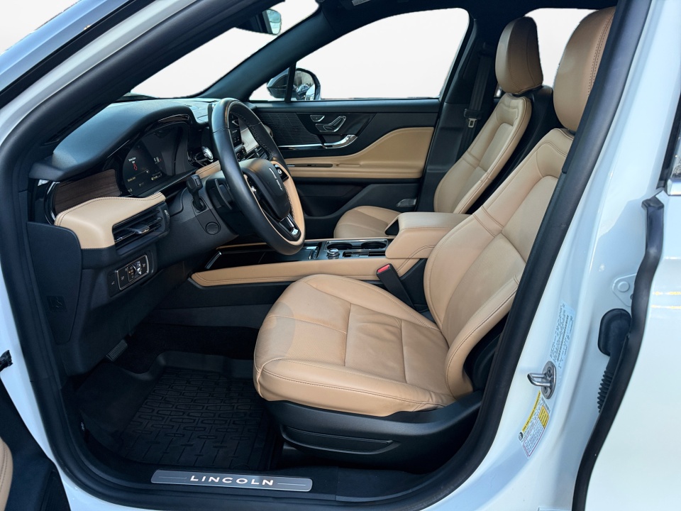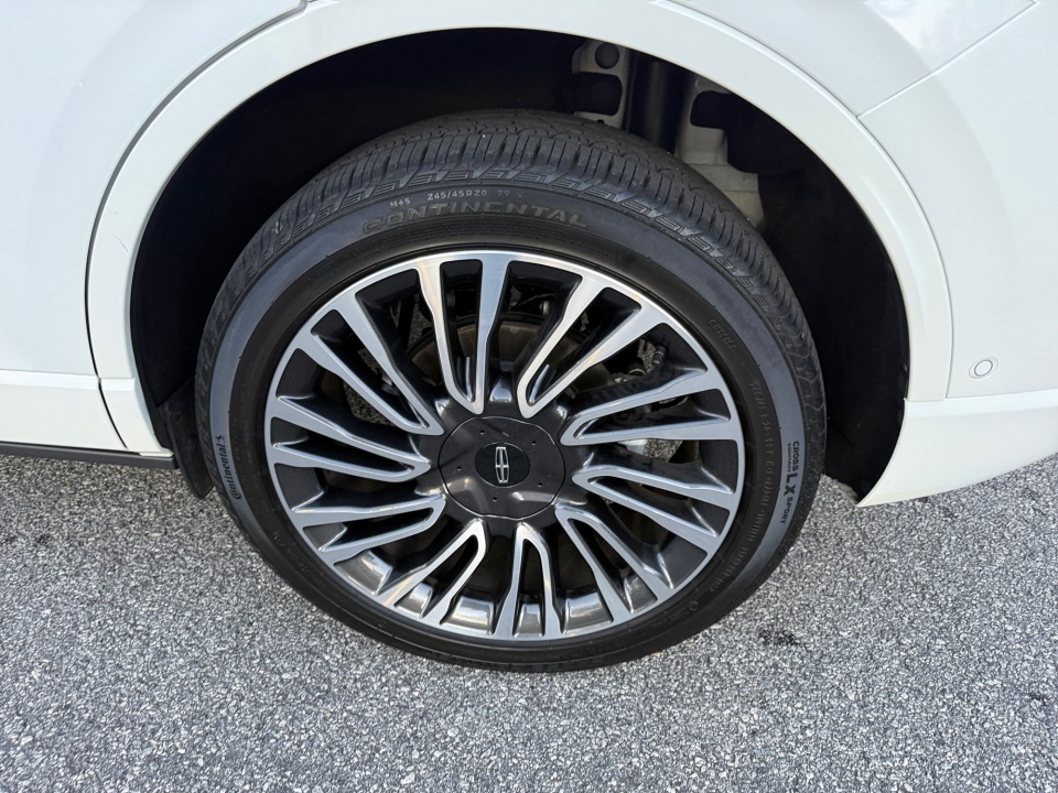 10 Speakers, 19" Bright Machined Aluminum Wheels, 3.81 Axle Ratio, 360-Degree Camera w/Front & Rear Camera Washer, 4-Wheel Disc Brakes, ABS brakes, Active Park Assist 2.0, Air Conditioning, All-Weather Floor Liners w/Fr&Rr Carpet Floor Mats, Alloy wheels, AM/FM radio: SiriusXM, Auto High-beam Headlights, Auto tilt-away steering wheel, Auto-dimming door mirrors, Auto-dimming Rear-View mirror, Automatic temperature control, Body-Color Front Bumper w/Painted Lower Fascia, Body-Color Plastic Rear Bumper, Brake assist, Bumpers: body-color, Compass, Delay-off headlights, Driver door bin, Driver vanity mirror, Dual front impact airbags, Dual front side impact airbags, Electronic Stability Control, Elements Package, Emergency communication system: 911 Assist, Equipment Group 201A, Evasive Steering Assist (ESA), Four wheel independent suspension, Front anti-roll bar, Front Bucket Seats, Front Center Armrest, Front dual zone A/C, Front reading lights, Front/Side/Rear Parking Sensors, Fully automatic headlights, Garage door transmitter, Heated door mirrors, Heated front seats, Heated Rear Seat, Heated Steering Wheel, Heated/Ventilated Driver & Front Passenger Seats, Illuminated entry, Illuminated Front Scuff Plates, Intelligent Adaptive Cruise Control, Knee airbag, Leather steering wheel, Lincoln Co-Pilot360 1.5 Plus, Low tire pressure warning, Memory seat, Navigation System, Occupant sensing airbag, Outside temperature display, Overhead airbag, Overhead console, Panic alarm, Panoramic Vista Roof w/Power Sunshade, Passenger door bin, Passenger vanity mirror, Power door mirrors, Power driver seat, Power Liftgate, Power passenger seat, Power steering, Power windows, Premium Leather Heated Comfort Seats, Radio data system, Radio: Lincoln Premium Audio System w/MP3, Rain Sensing Wipers, Rear anti-roll bar, Rear Parking Sensors, Rear reading lights,
