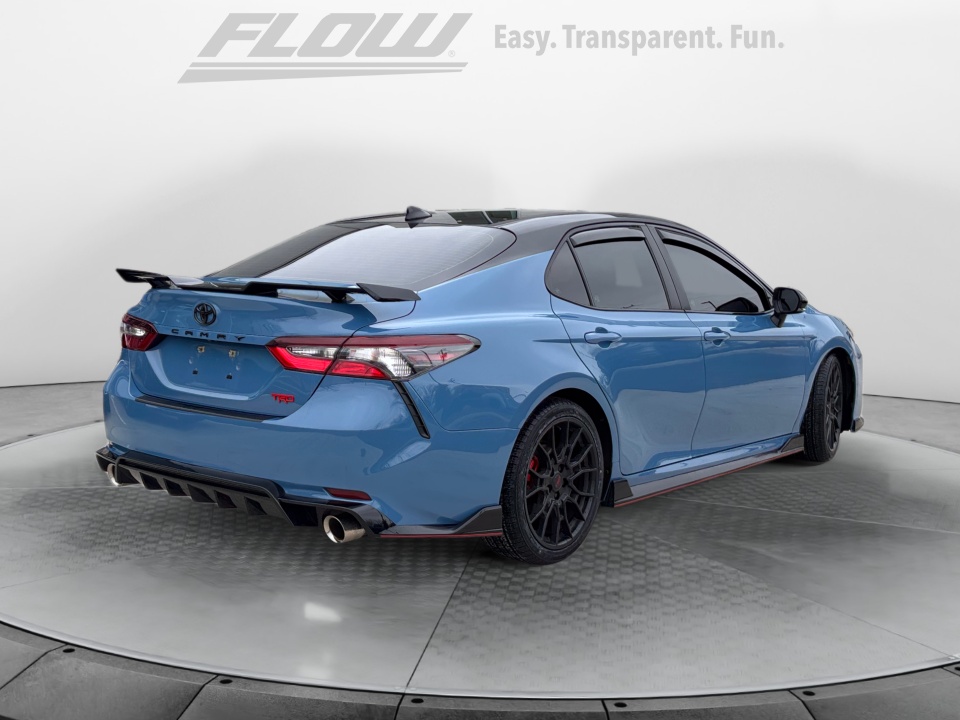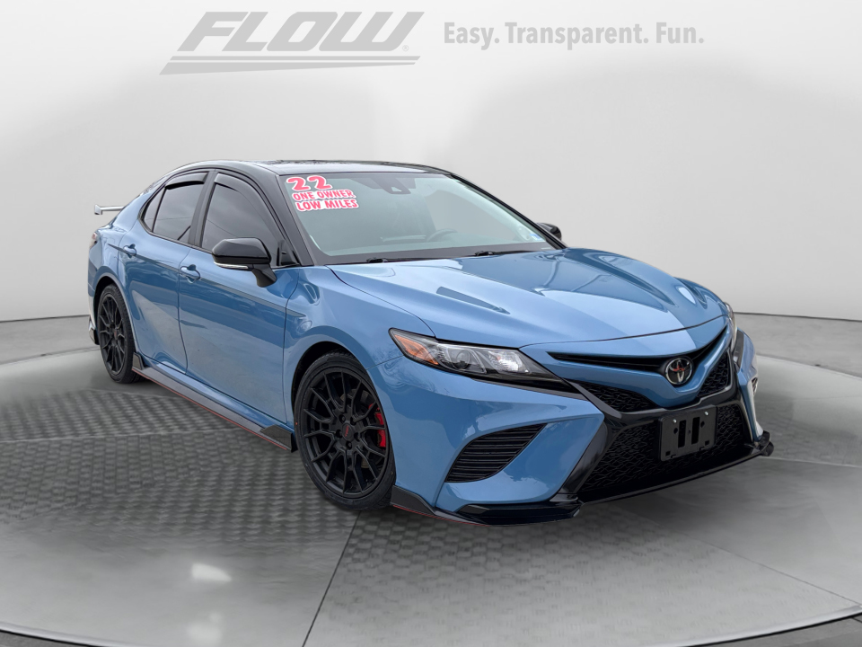 FLOW CERTIFIED! 4YR/100,000 MILE WARRANTY, 3 day money back guarantee, and a free maintenance package on this 2022 Toyota Camry Cavalry Blue/Midnight Black Metallic TRD V6! **