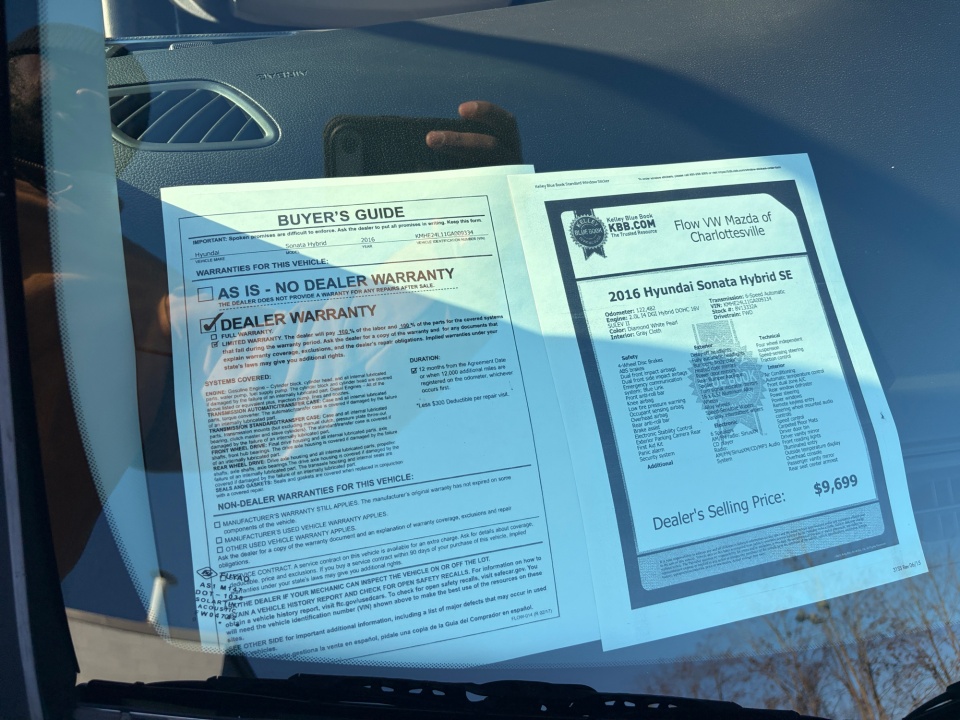 FLOW CERTIFIED! 12 MONTHS/12000 MILE WARRANTY, 3 day money back guarantee, and a free maintenance package on this 2016 Hyundai Sonata Hybrid Diamond White Pearl SE! **