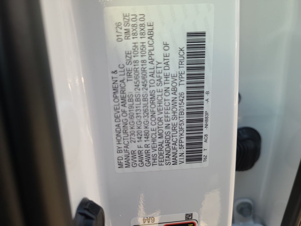 VIN 5FPYK3F5XTB015426