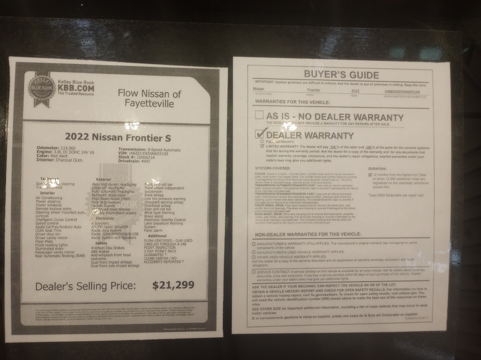 2022 Nissan Frontier | Crew Cab 4x4 S Auto | 114,979 miles