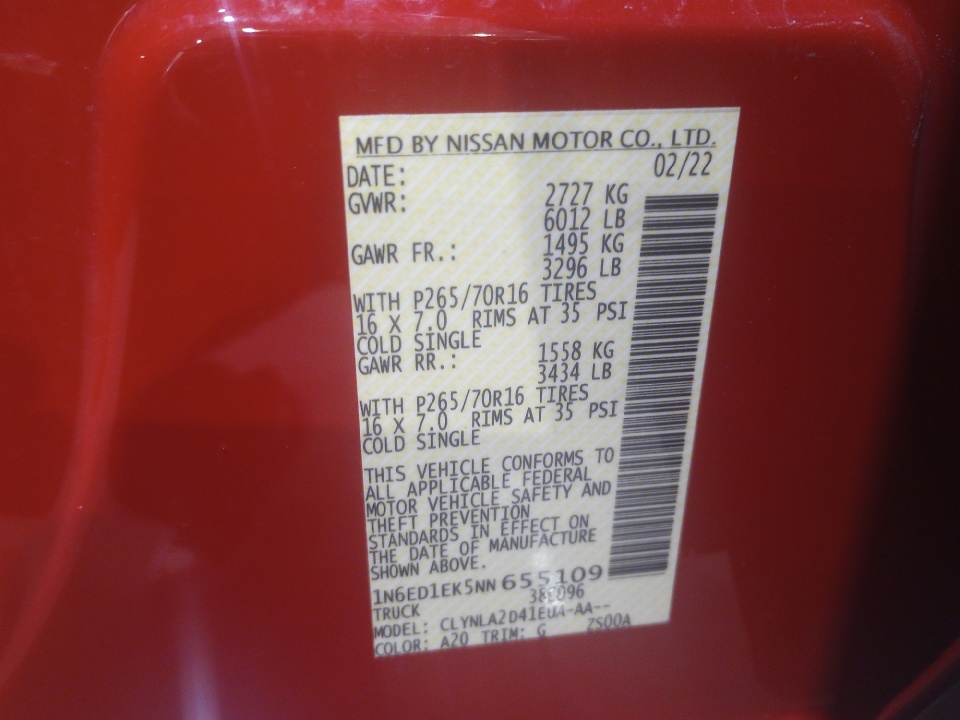 VIN 1N6ED1EK5NN655109