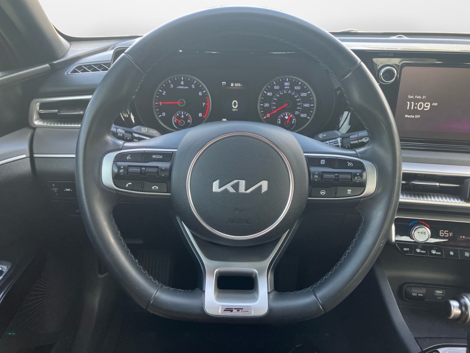 Sporty, sleek, and fun to drive, the 2024 Kia K5 GT-Line stands out with bold styling and modern tech. Powered by a turbocharged engine with an 8-speed automatic, it delivers a smooth, responsive ride. Features include sport-inspired accents, 18" black alloy wheels, a large touchscreen display, advanced safety features, and a comfortable, driver-focused interior. A sharp-looking sedan thats ready for everyday driving.